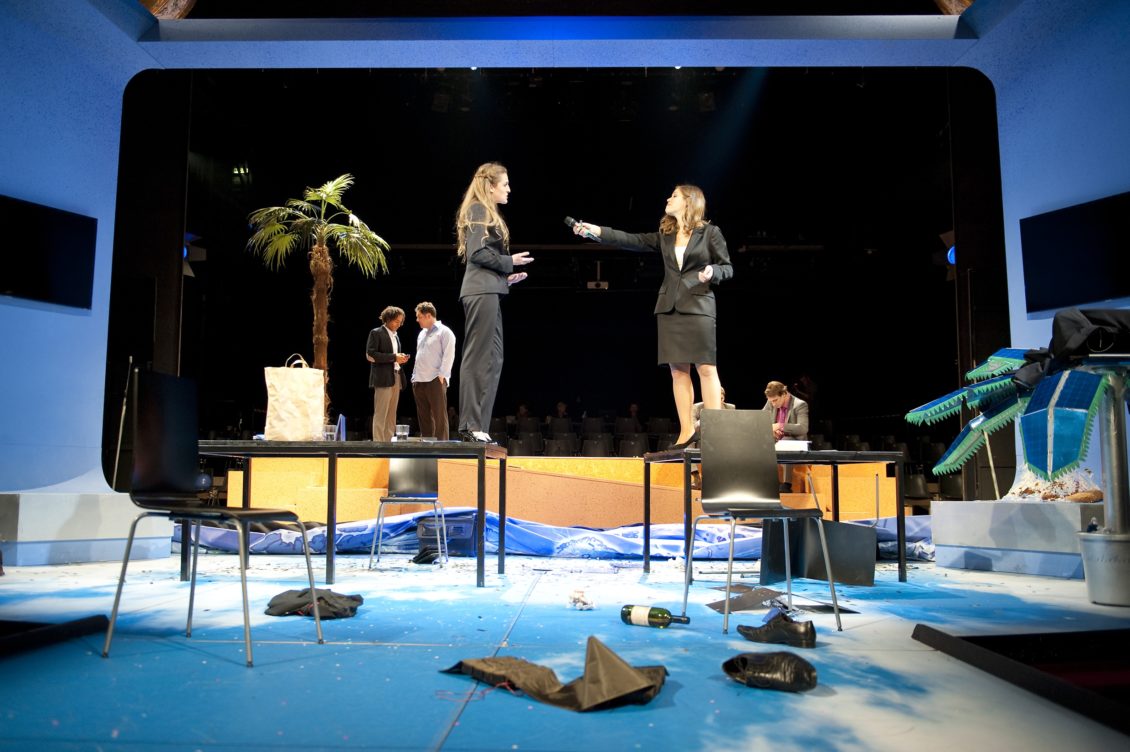 Johannes Enders kluger Jelinek Doppelabend „Wolken.Heim/Am Königsweg“ sorgte mit Vea Kaisers turbulenter Komödie „Blasmusikpop“ für einen markanten Auftakt im Schauspiel. Aischylos, John von Düffel, Lea Rosh und ein famoses Schauspielensemble ließen „Die Erfindung der Demokratie“ zu einem gedankenstarken Theaterabend werden.