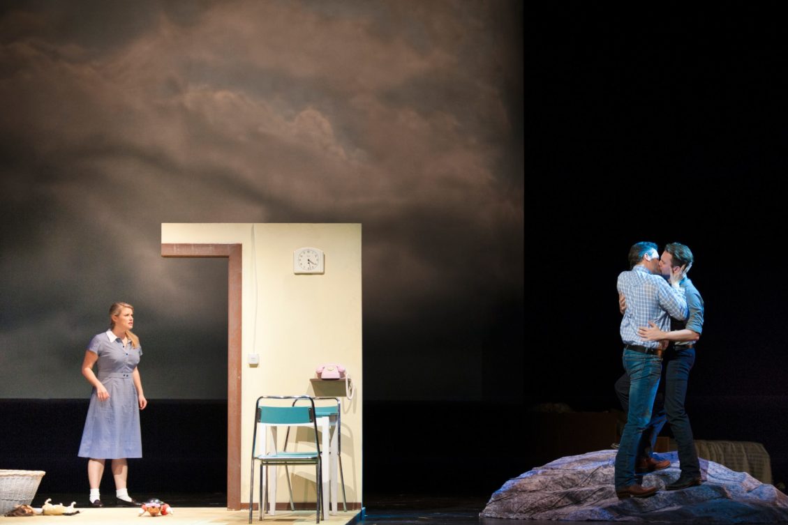 Bildnachweise: „Romeo und Julia“: Julienne Pfeil, Sofie Gross // „Brokeback Mountain“, Hailey Clark, Florian Plock, Mark Omvlee // „Romeo und Julia“, Ensemble // „Sündenfall“, Diego da Cunha, Ensemble // „Arielle“, Hanna Kastner, Gregor Weisgerber