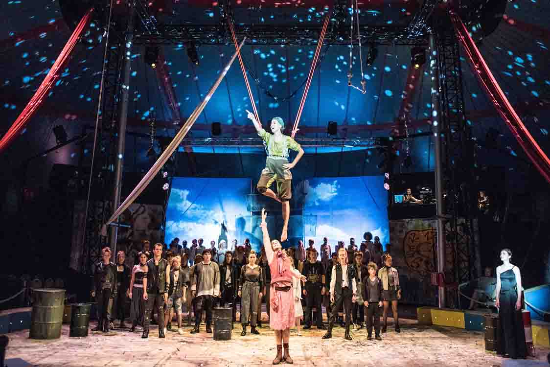 Nostalgische und poetische Circusatmosphäre verströmte schon die Spielstätte, ein ehemals vom Circus Roncalli genutztes Zirkuszelt. Das Schauspiel „Kasimir und Karoline“ zeigte ein starkes Ensemble, das sich im spektakulären „Wheel of Steel“ als Metapher für den Jahrmarkt, aber auch die soziale Dynamik tummelte. Zur Opernproduktion „Carmen gesellte sich ein ganzes Artistenensemble und trotze mit Orchester, Solist*innen und Chor Regen und Hitze. Andreas Gergen adaptierte seine Musicalinszenierung „Cabaret“ kongenial für die Manege. Mit der Produktion „Peter Pan“, die spektakuläre Flugnummern und ein starkes Jugendensemble aufbot, klang die Zirkuszeit aus.