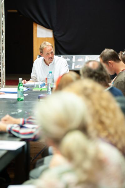 Wichtig war für mich auch die Station am Staatstheater Karlsruhe bei Pavel Fieber. Er war ein richtiger Allroundintendant. Als Schauspieler, Regisseur und künstlerischer Leiter hat er dieses Theater durch seine Expertise in allen drei Feldern geleitet und wurde für mich zum Vorbild. Es gibt ja reine Manager-Intendanten, und es gibt reine Künstler-Intendanten, er hat Beides vereint. Für mich hat es sich bewährt, ein Theater zu führen, indem ich mich nicht nur um den Kurs kümmere, sondern regelmäßig mit dem Ensemble und den Abteilungen kreativ arbeite. Gleichzeitig halte ich mich nicht für den wichtigsten Regisseur am Haus.